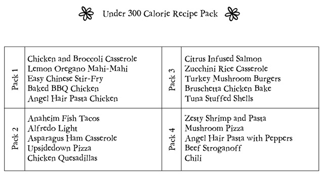 The recipe packs will keep you organized by keeping track of all the ingredients that you will need on your grocery list. Right there in the pocket!
